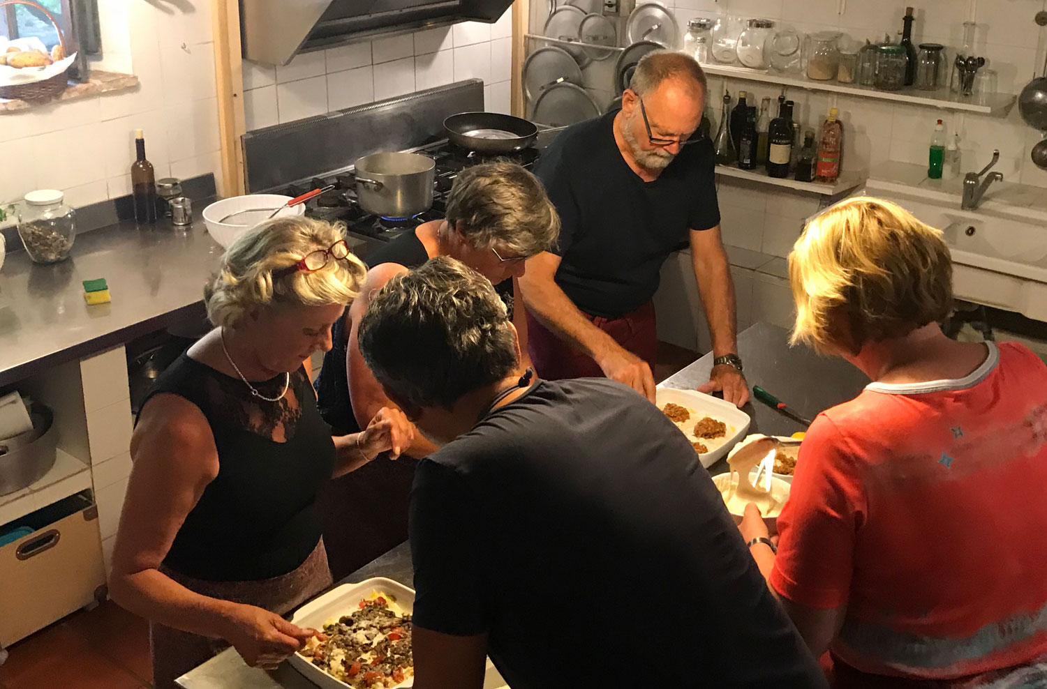 in Italie. Elke dag een kookcursus, bezoek naar plaatselijke markten om